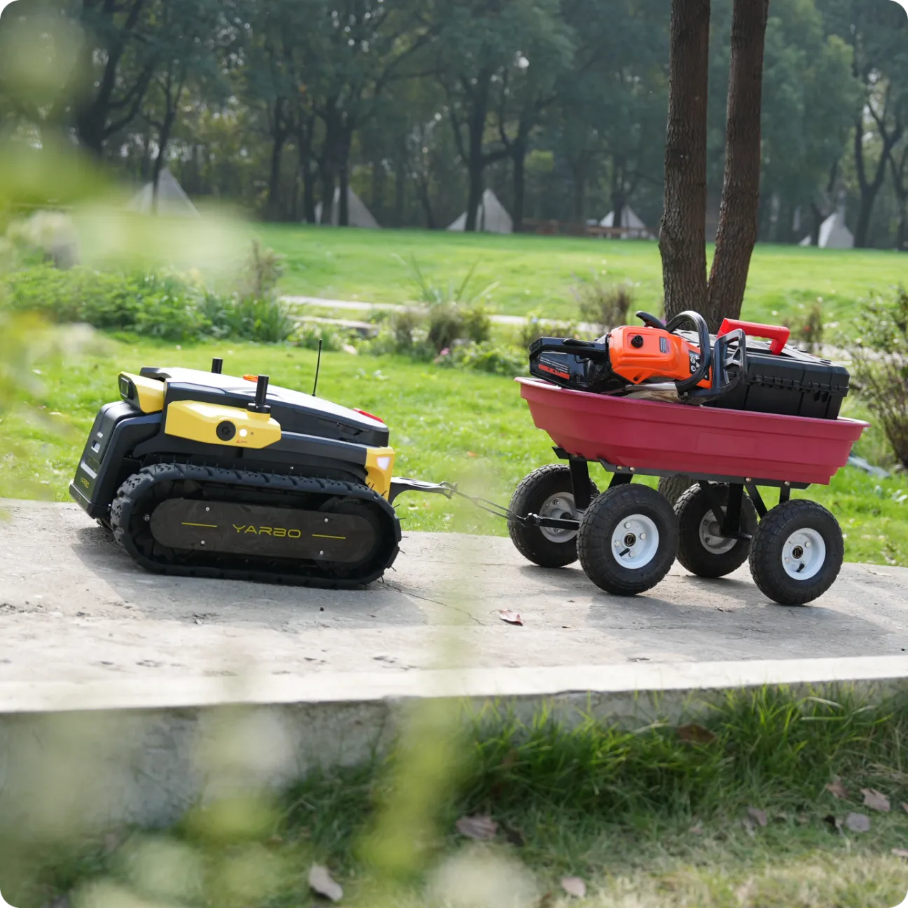Yes! The Yarbo Core comes with a smart assist module that not only supports towing but also includes advanced surveillance capabilities with real-time video streaming via its binocular front camera and side cameras. This makes the Yarbo Core a versatile, multi-functional robot that can follow you while carrying heavy loads, and double as a security robot to protect your property.