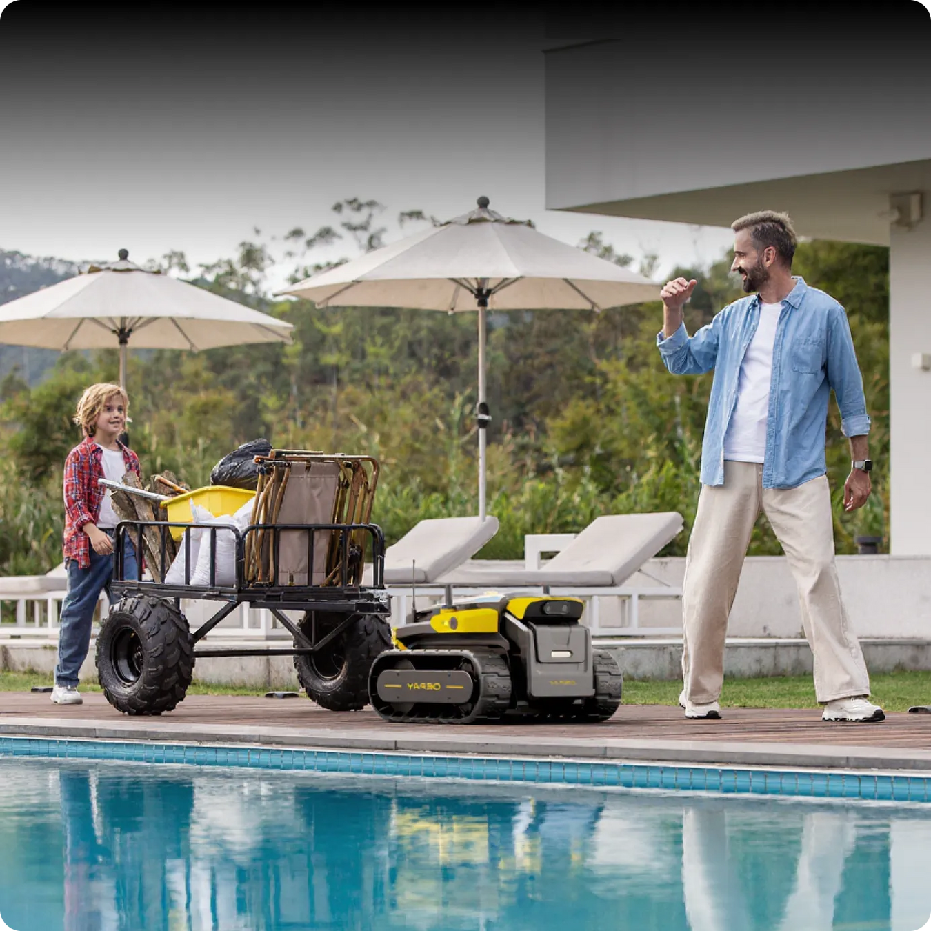 Ensuring the safety of your pets is a top priority for us. All Yarbo modules are featured with Intelligent Obstacle Avoidance System that uses advanced sensors and computer vision technology to detect and avoid obstacles in your yard, including pets. This system helps prevent potential collisions, ensuring the well-being and safety of your furry friends while Yarbo is in operation.